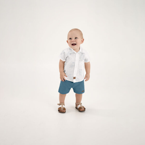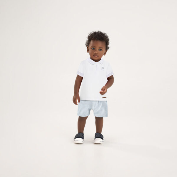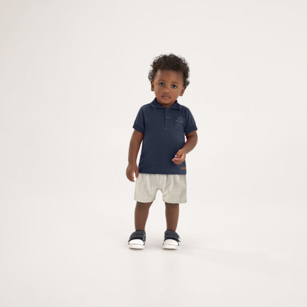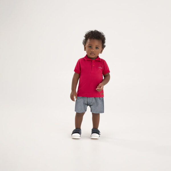 Este conjunto Pulla Bulla combina uma camiseta polo confeccionada em meia malha 100% algodão com detalhe termocolante, trazendo charme e sofisticação ao visual do seu menininho. A bermuda em tecido ecológico fio tinto é macia, resistente e cheia de estilo, ideal para compor looks confortáveis e versáteis para os passeios e brincadeiras do dia a dia.
