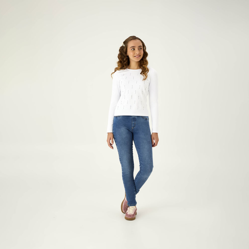 Estilosa e cheia de brilho, a blusa juvenil menina da Pulla Bulla é perfeita para compor looks modernos. Confeccionada em cotton leve, oferece toque macio e confortável para o dia a dia. O detalhe em strass traz um brilho delicado, deixando a peça ainda mais fashion.