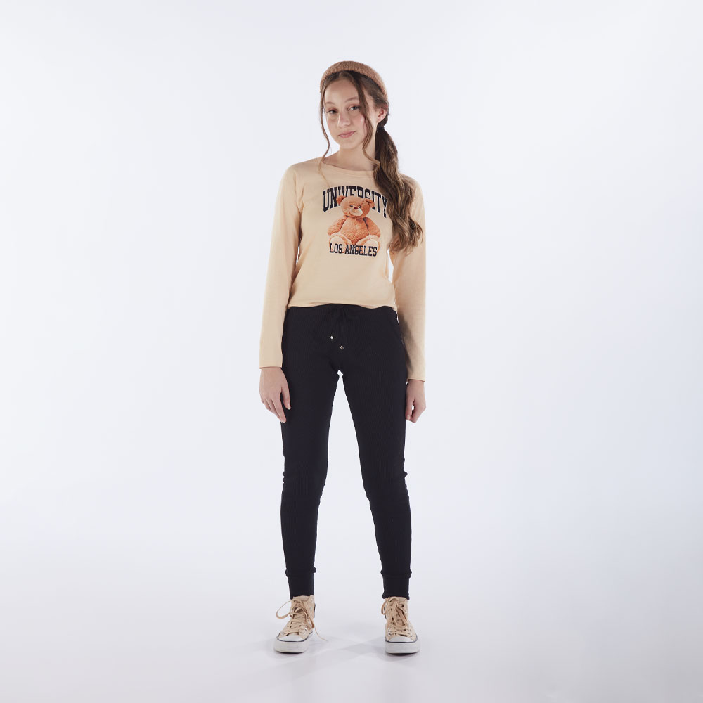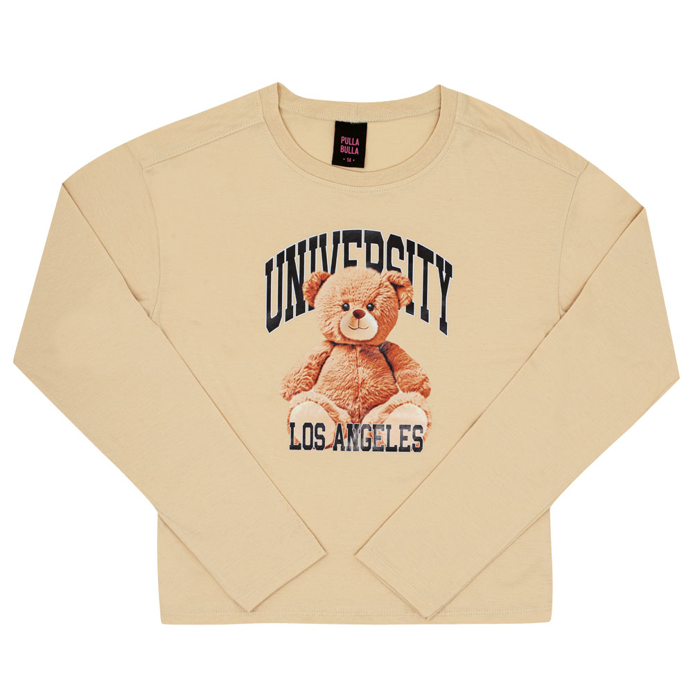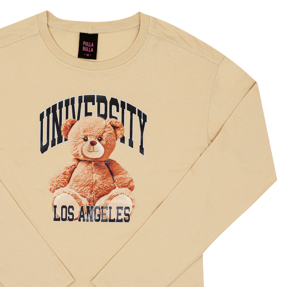 Conforto e fofura em uma peça só! A blusa em meia malha na cor avelã traz estampa moderna com um ursinho carismático e lettering estilo universitário, perfeita para quem curte um visual casual com um toque divertido. Ideal para o dia a dia, escola ou momentos de lazer.