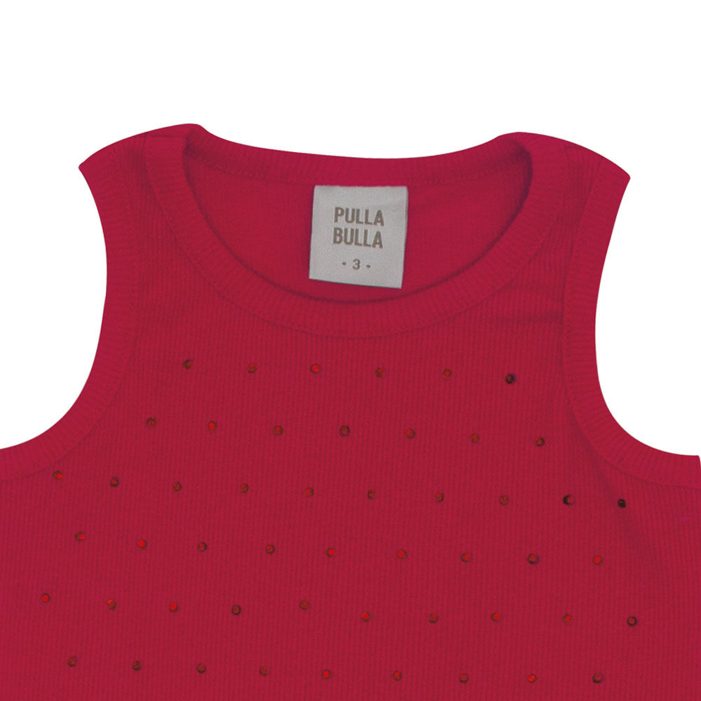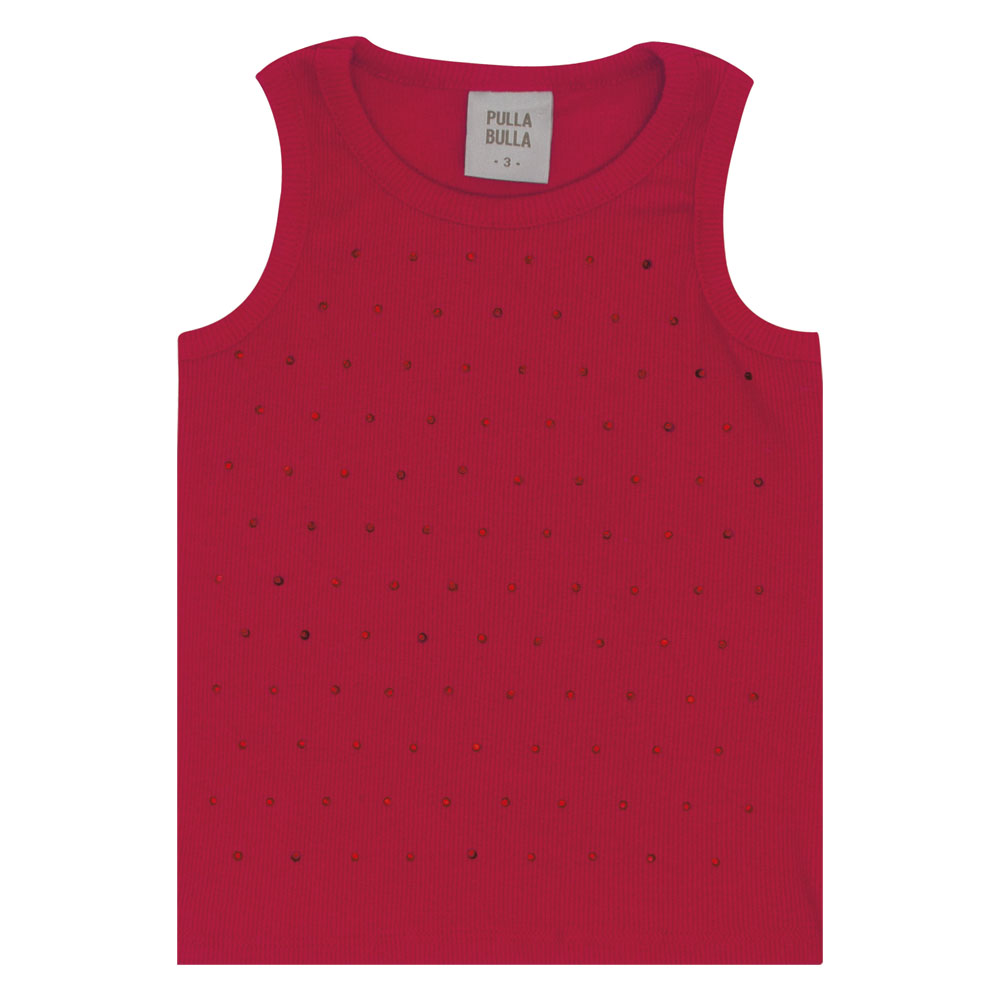 Blusa regata primeiros passos feminina, confeccionada em ribana com elastano leve na cor vermelho, proporcionando conforto e ajuste perfeito ao corpo. A peça conta com aplicação de strass por toda a extensão, trazendo brilho e delicadeza ao look. Ideal para dias quentes e refrescantes, pode ser combinada com shorts ou saias leves e sandálias para um look confortável e estiloso.