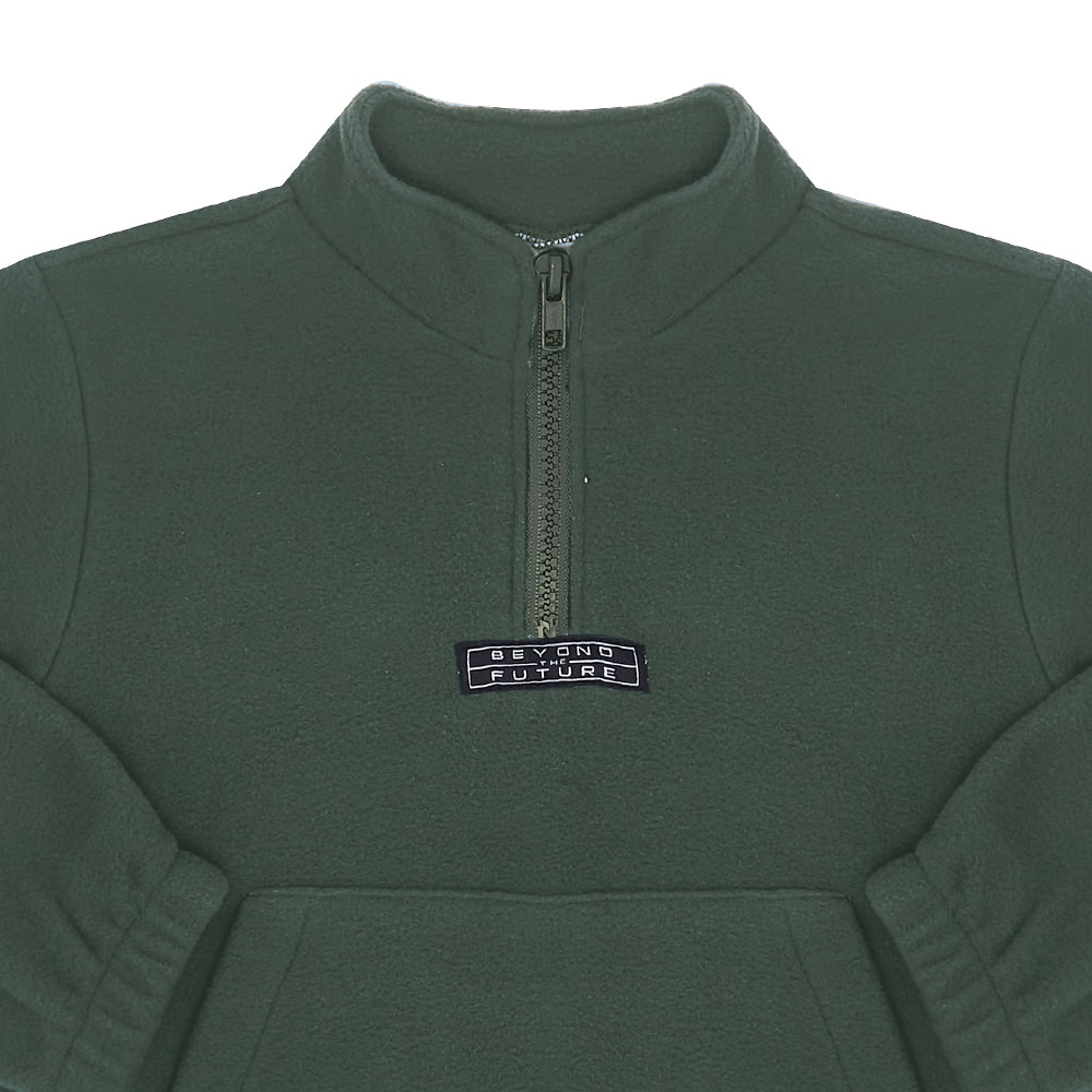 Ideal para o dia a dia e para as brincadeiras com os amigos o blusão em malha soft na cor militar possuí bolso canguro e a gola em abertura com zíper. O detalhe do aplique termocolante na frontal da peça possuí escrita BE YOUND THE FUTURE (Tradução: Seja Jovem do Futuro)