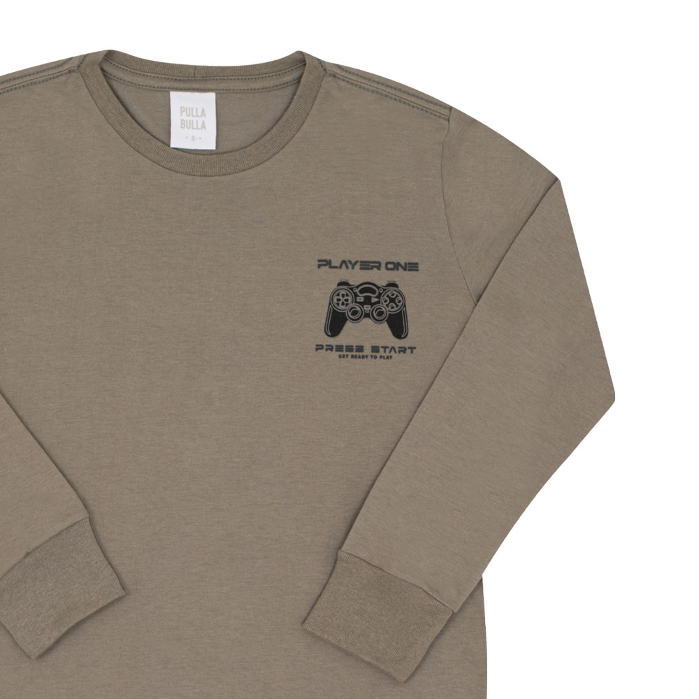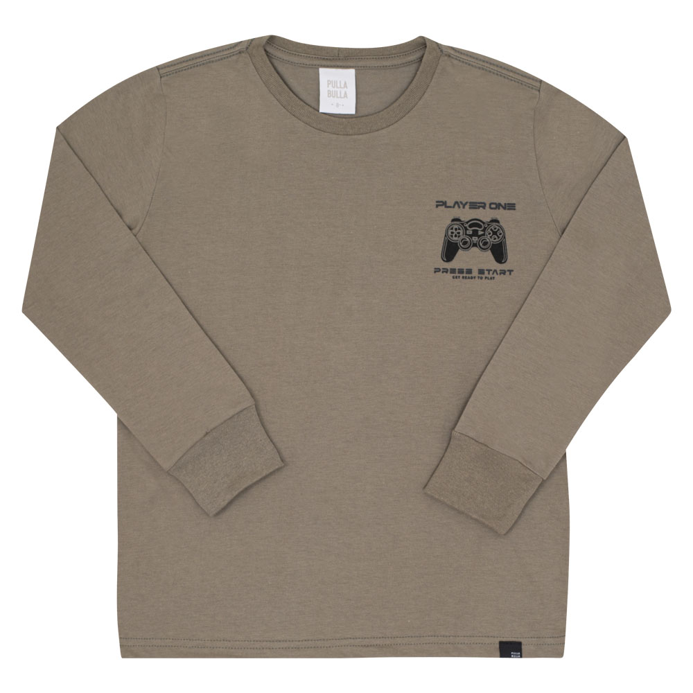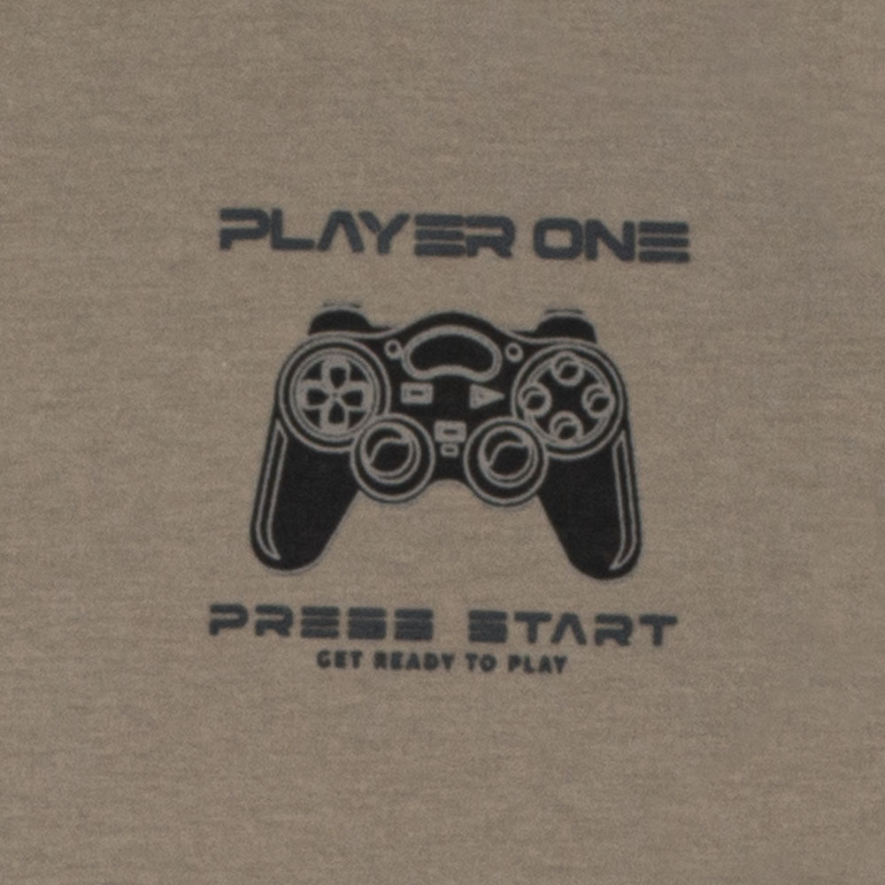 A diversão começa aqui! Essa camiseta em meia malha na cor granito é ideal para os pequenos que adoram o universo dos games. Com modelagem confortável, ela traz uma estampa minimalista no peito com um controle de videogame e os dizeres “Player One – Press Start”, perfeita para os pequenos jogadores.