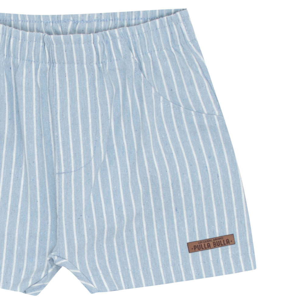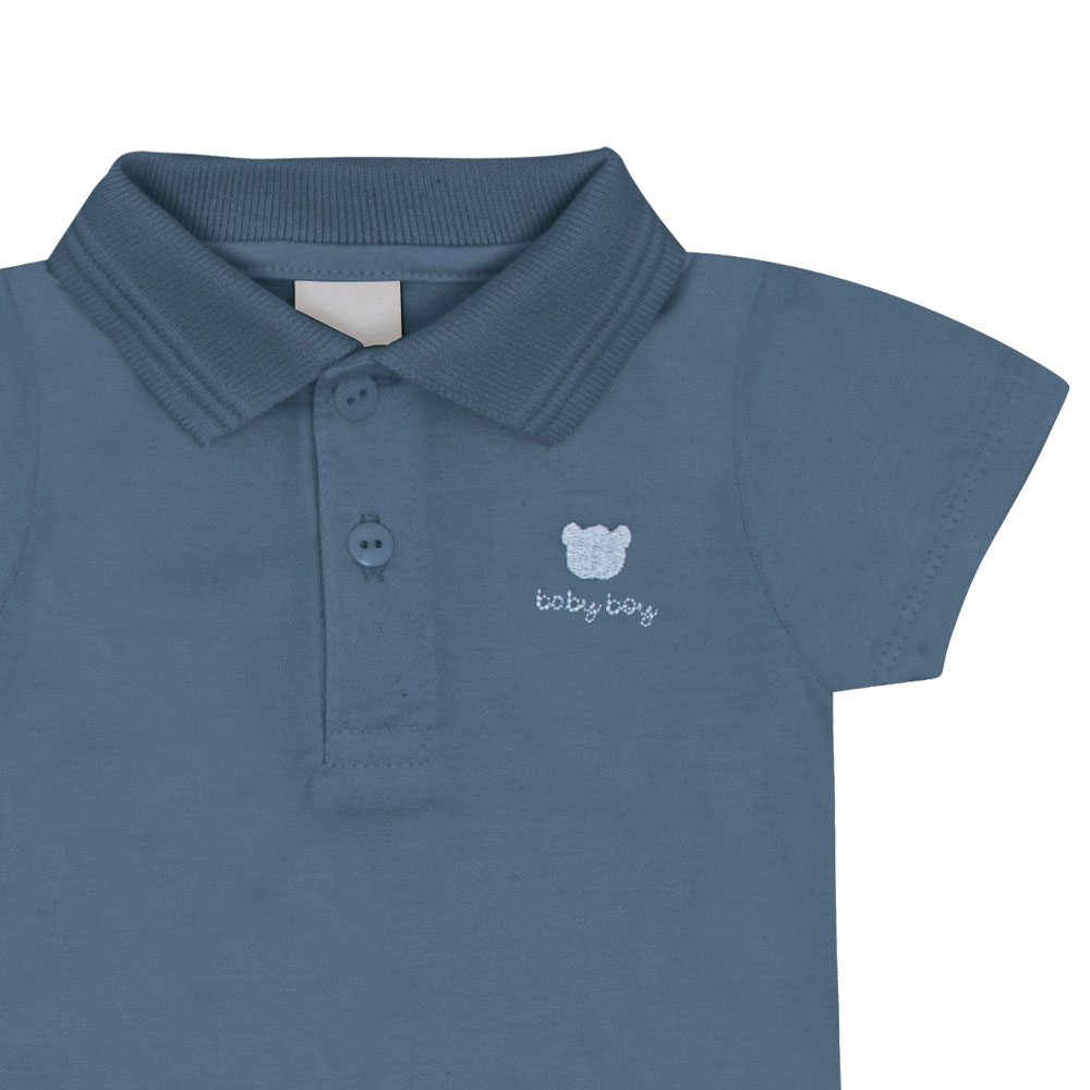 Conjunto bebê masculino composto por um body em piquet com elastano na cor azul cobalto, modelo polo que une estilo e conforto. O body apresenta abertura de botões na gola para facilitar o vestir e um bordado de ursinho próximo ao peito, trazendo delicadeza à peça. A bermuda é confeccionada em tecido eco listrado vertical na cor hortênsia, com bolso lateral, aplique termocolante próximo à barra e cintura de elastano, garantindo conforto e segurança durante as brincadeiras. Perfeito para ocasiões especiais!
