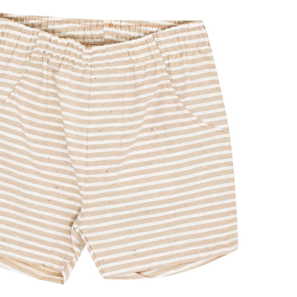 Conjunto baby moderno, composto pela camisa em tricoline na cor marinho, leve e confortável para seu pequeno poder usar em qualquer ocasião, já a bermuda é em tecido eco listrado na cor areia. Ideal para seu pequeno fashionista encantar a todos.