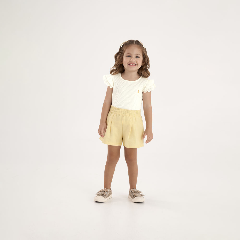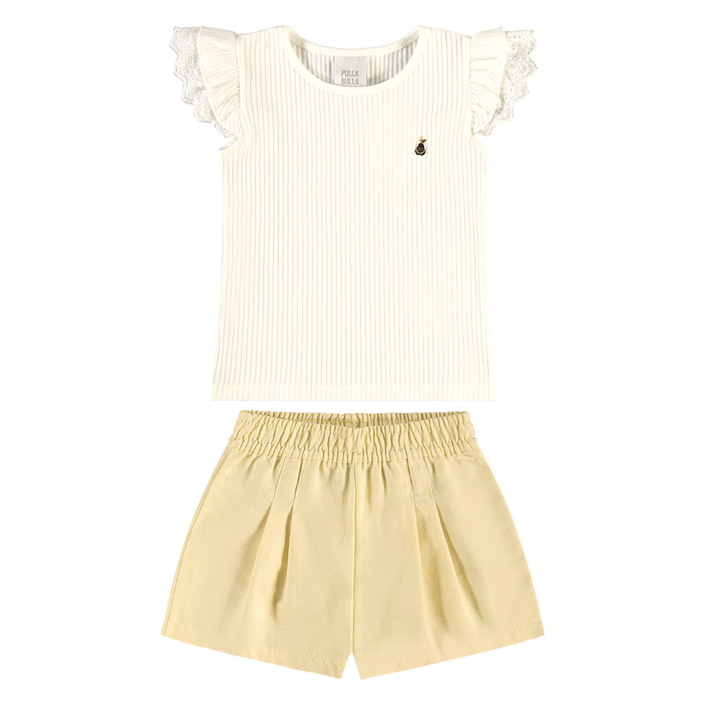 Confortável e moderno, o conjunto primeiros passos menina da Pulla Bulla é ideal para acompanhar sua menininha no dia a dia. A blusa em malha canelada oferece toque macio e ajuste confortável ao corpo, enquanto o short em tecido eco traz leveza e um visual mais consciente. Um look prático e cheio de estilo.