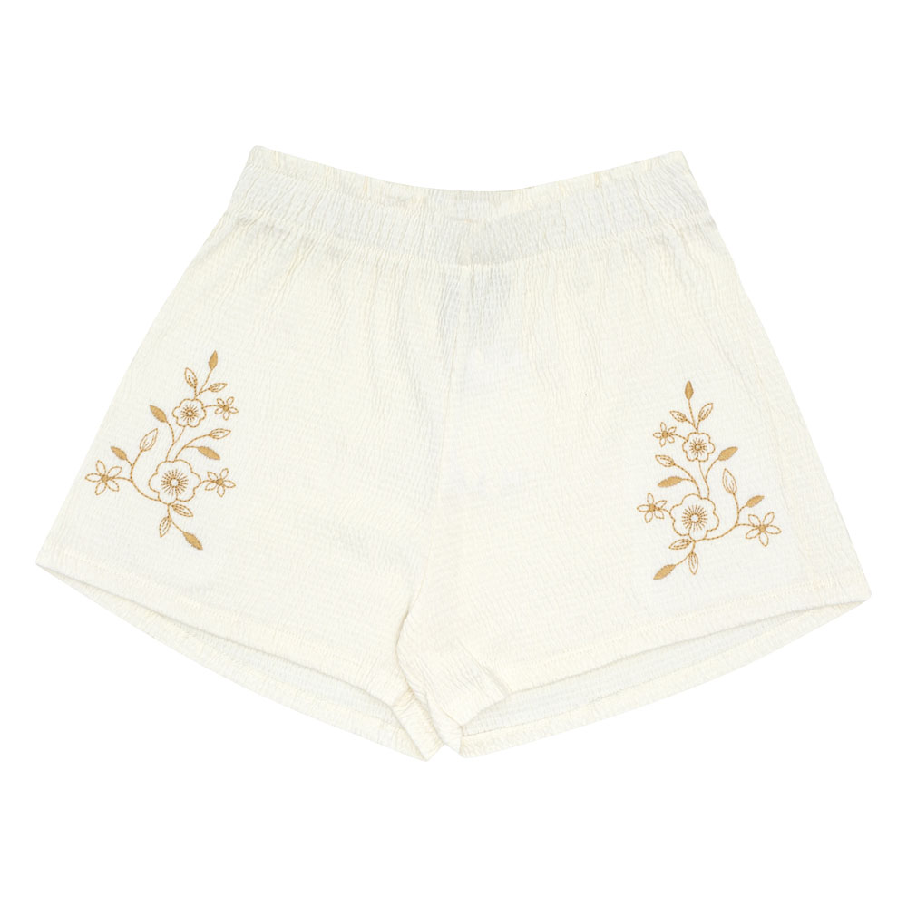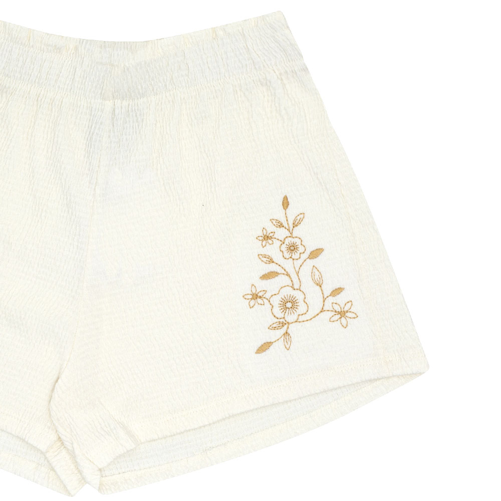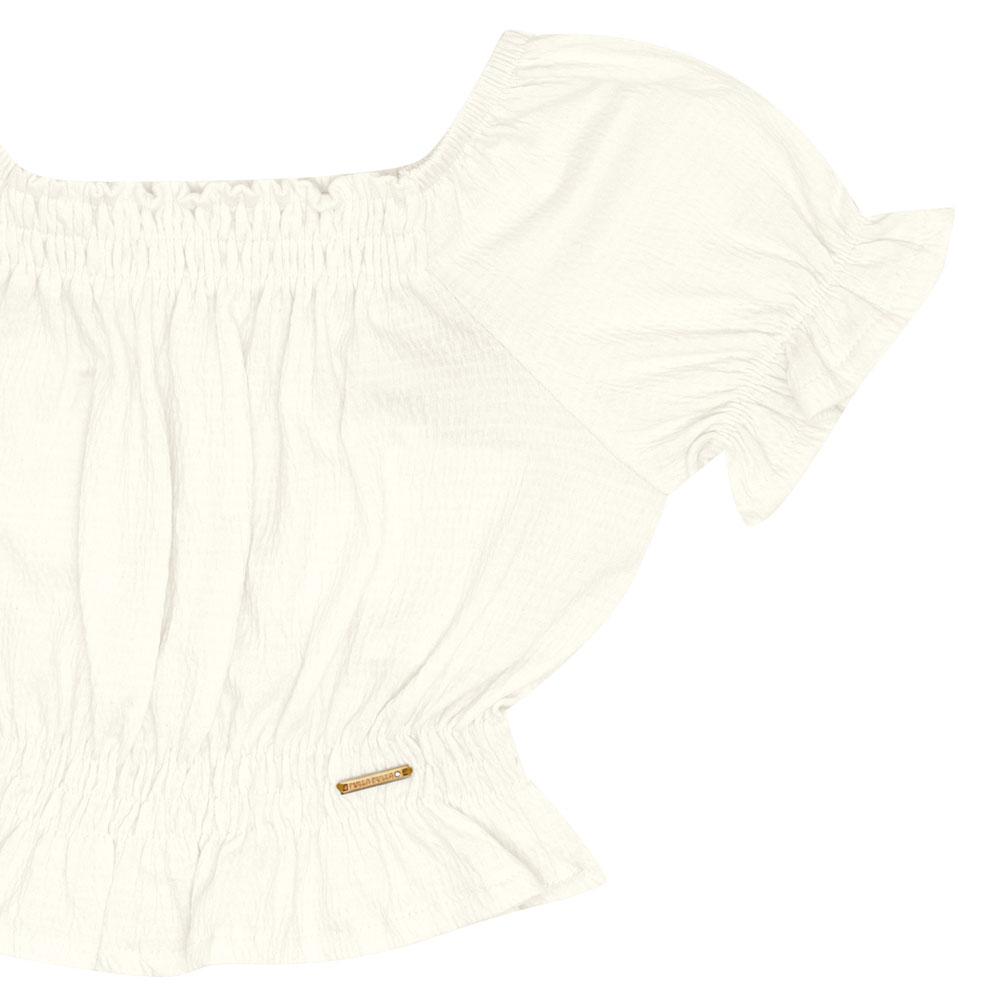 Conjunto composto por blusa e short confeccionados em malha anarruga na cor off white. O short possui detalhes bordados, trazendo um toque especial à peça. Ideal para usar em passeios ao ar livre, encontros familiares ou eventos informais, garantindo conforto e estilo em dias quentes.