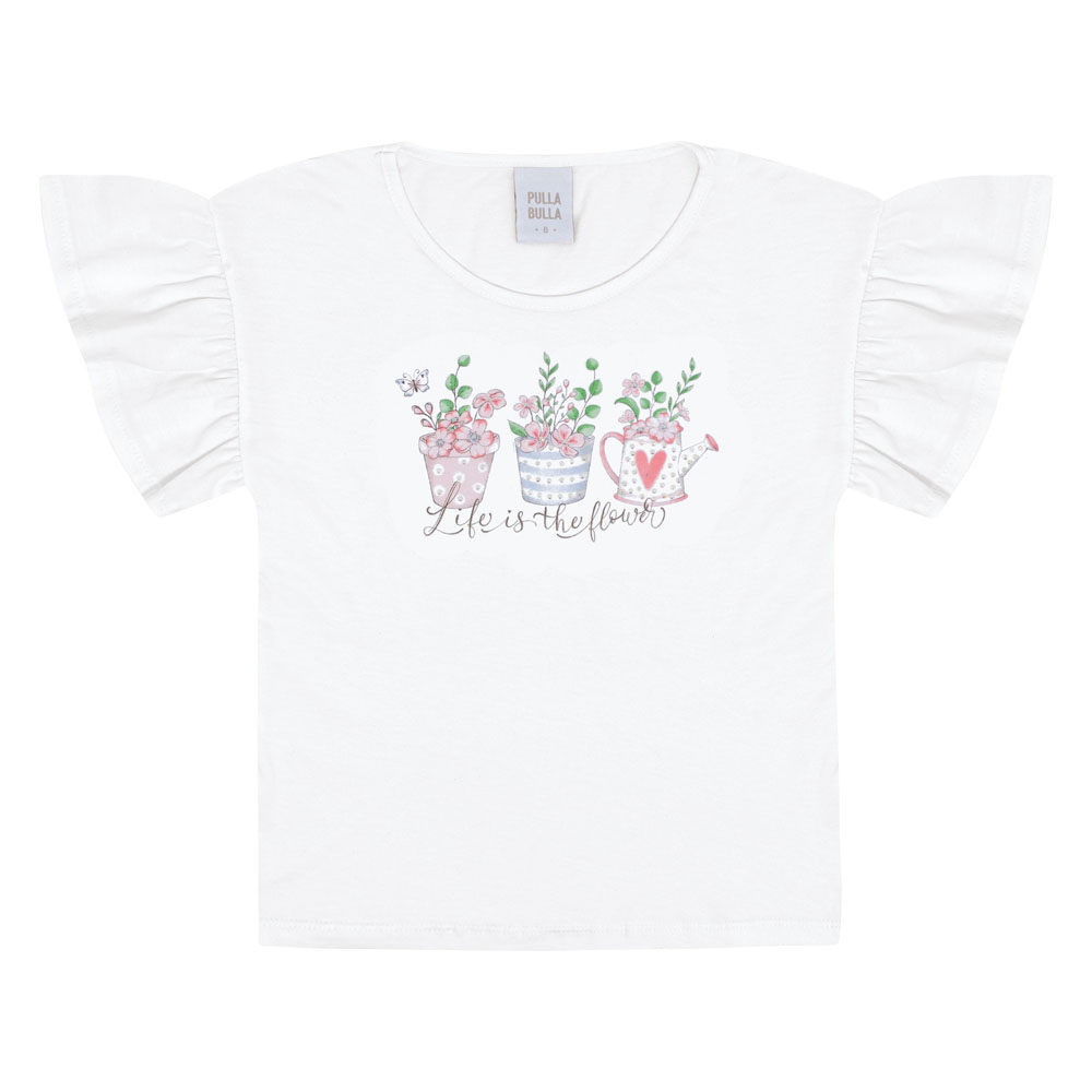 Meninas charmosas e fashionistas amam lookinhos Pulla Bulla! Composto por uma blusa meia malha na cor branca com estampa de flores com strass e escrita “vida são flores” e short em moletom linho na cor rosa pó com bolsos laterais funcionais e elastano na cintura para maior conforto ao usar a peça! Versátil para todas as ocasiões do dia a dia.