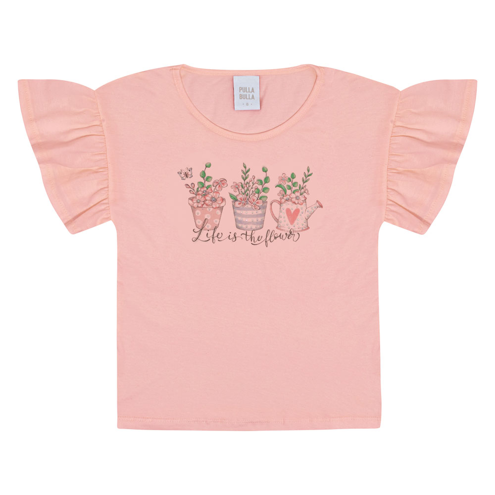 Meninas charmosas e fashionistas amam lookinhos Pulla Bulla! Composto por uma blusa meia malha na cor rosê com estampa de flores com strass e escrita “vida são flores” e short em moletom linho na cor natural com bolsos laterais funcionais e elastano na cintura para maior conforto ao usar a peça! Versátil para todas as ocasiões do dia a dia.