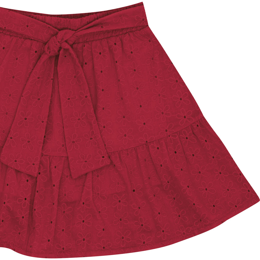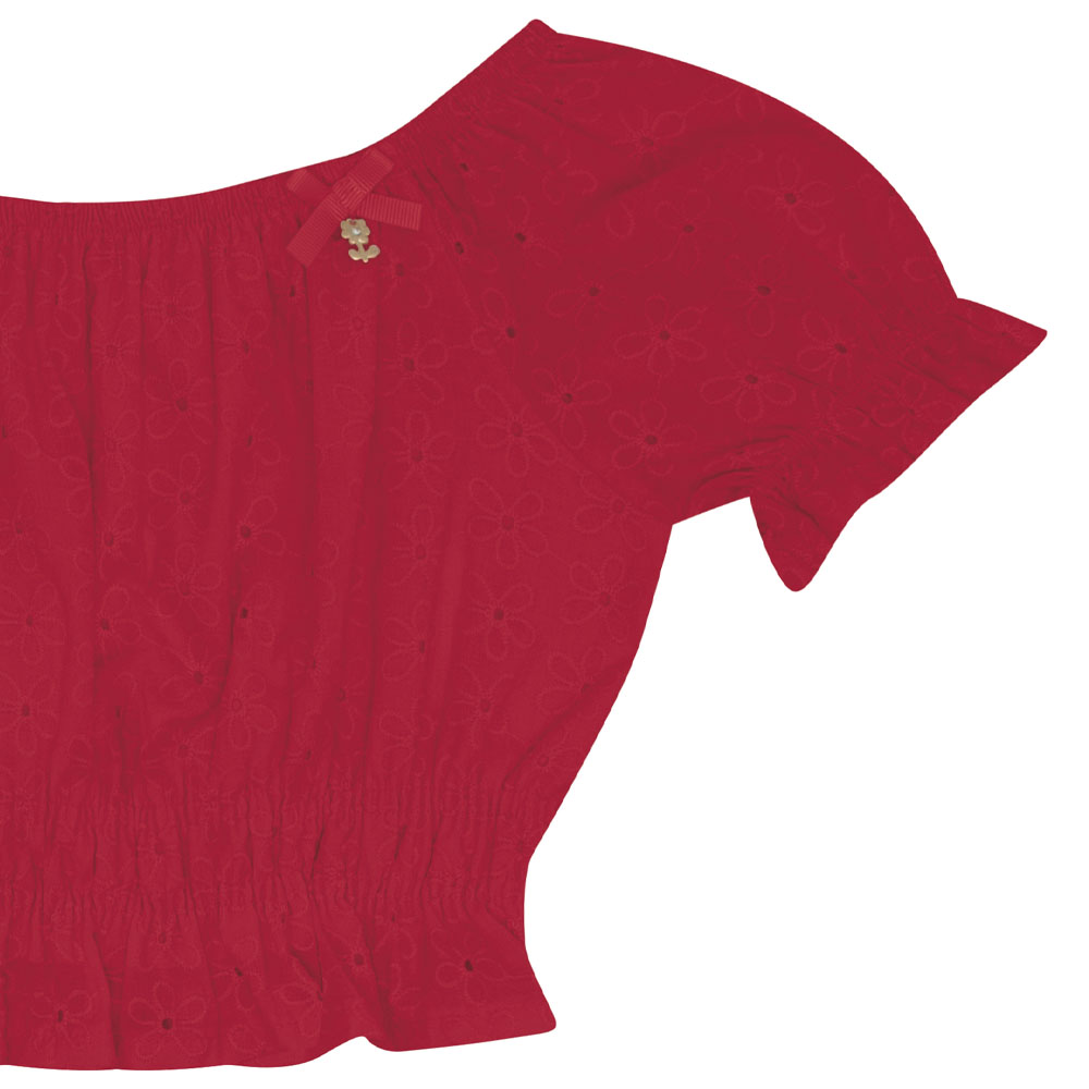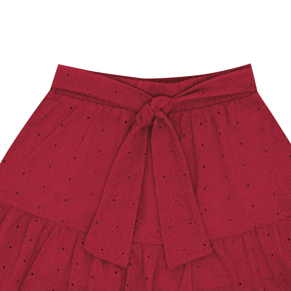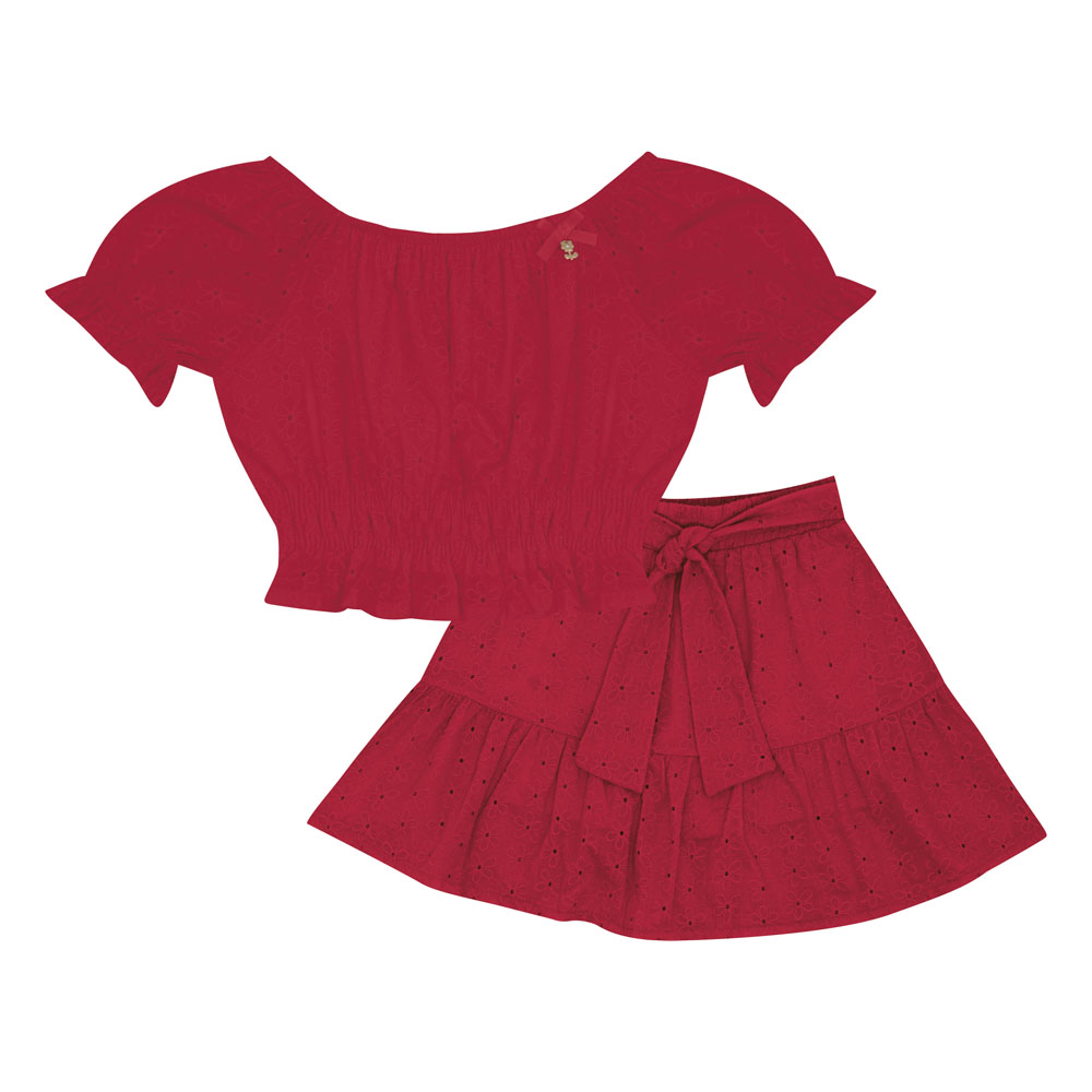 Conjunto vermelho composto por uma blusa confeccionada em tecido laise e meia malha e uma saia short em tecido laise com cotton leve, que proporciona praticidade e liberdade de movimento. Ideal para passeios divertidos entre a mamãe e a filha!