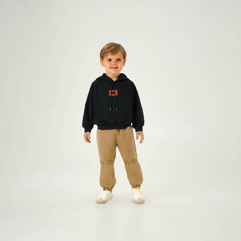 Moderno e confortável, o conjunto primeiros passos menino da Pulla Bulla é ideal para acompanhar o dia a dia do seu menininho. O blusão em malha relevo 100% algodão oferece toque macio e conta com capuz, cadarço e etiqueta termocolante, trazendo um visual atual e prático. A calça em moletom, com aplique interativo, completa o look com conforto e um toque divertido.