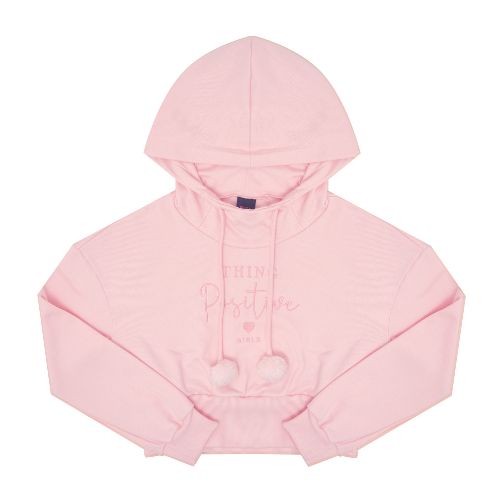 Fofinho e quentinho para as meninas curtirem todos os momentos especiais com este conjunto. Ambos confeccionados em moletom na cor rosê. O blusão possuí a barra larga, capuz com cadarço de pom pom para ajustar, aplique bordado frontal com escrita “Coisa positiva meninas”. A calça possuí elastano no cós e na barra com bolsos laterais.