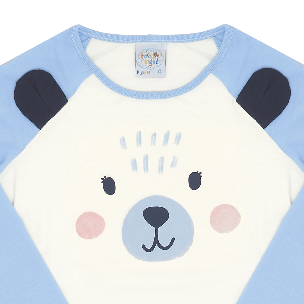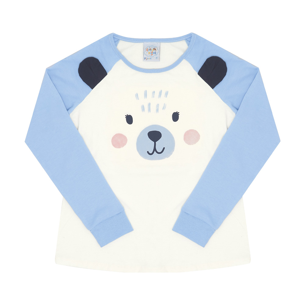 Nosso conjunto de pijama é composto pela blusa e a calça em tecidos meia malha na cor off white com hortênsia. A blusa de manga longa possuí estampa frontal de ursinho com orelhas interativas e a calça com elastano na cintura também possuí estampa de patinhas de urso no joelho. Assim a hora do soninho se torna mais leve, quentinha e alegre!