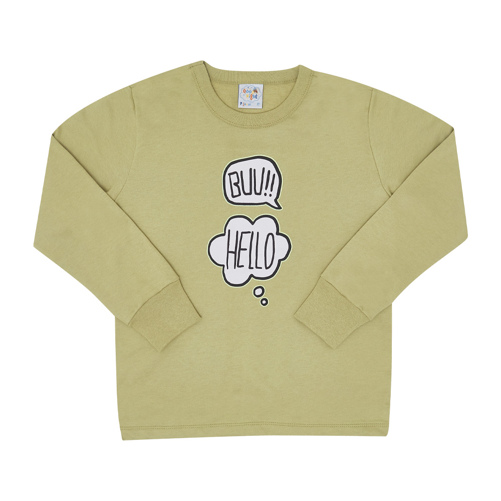 Quentinho e divertido para aquecer os pequenos durante a estação. Confeccionado em moletinho, o blusão de manga longa na cor pistache possuí estampa frontal com escrita “buu!” “Hello” e ambas brilham no escuro também. Já a calça possuí estampa rotativa na cor pistache de pequenos fantasmas e seres divertidos além de possuir elastano no cós. Tudo para garantir uma boa noite de sono aos pequenos aventureiros!
