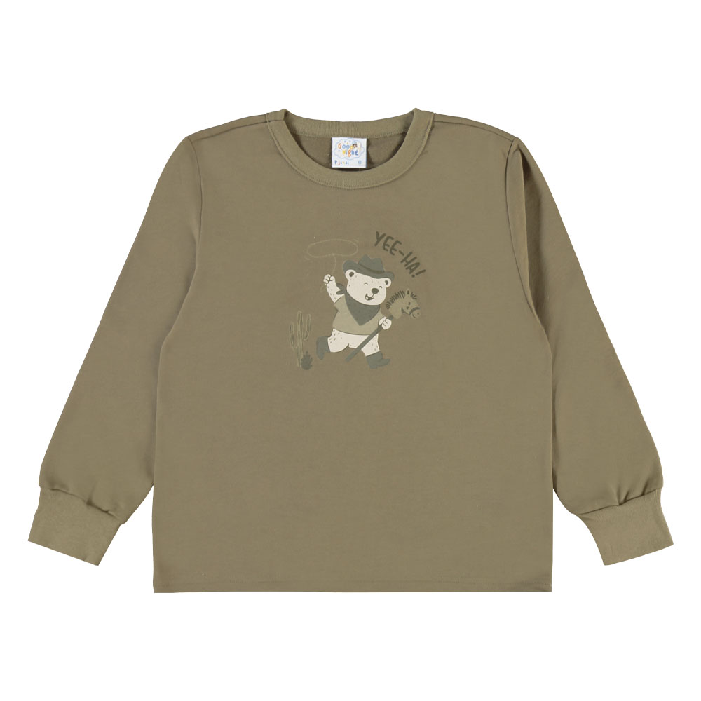 Confortável e divertido, o pijama infantil menino da Pulla Bulla é ideal para noites tranquilas do seu garotinho. Confeccionado em moletinho 100% algodão, oferece toque macio e aconchegante. O blusão com estampa de urso traz um visual fofo e encantador, enquanto a calça com estampa rotativa completa o look com alegria e conforto.