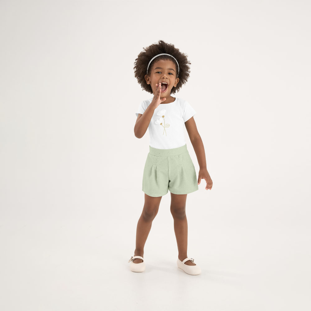 Um short charmoso, fresquinho e com acabamento moderno para sua menininha aproveitar os dias de primavera com estilo! Confeccionado em molecotton sarjado com toque de linho, o modelo oferece conforto, sofisticação e liberdade de movimento. Ideal para compor looks delicados e versáteis, seja para passeios ou ocasiões especiais.